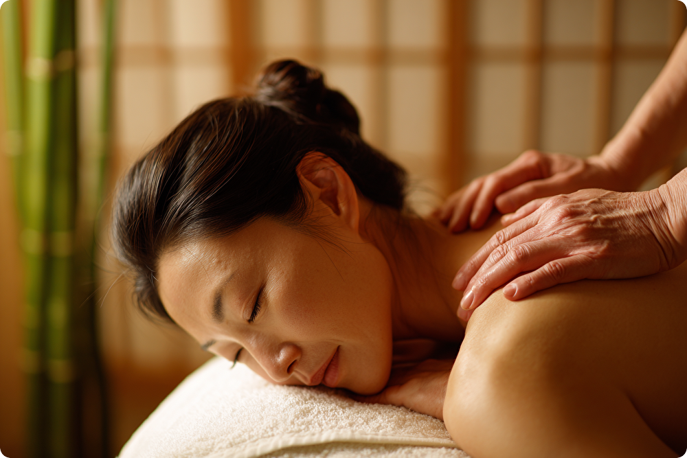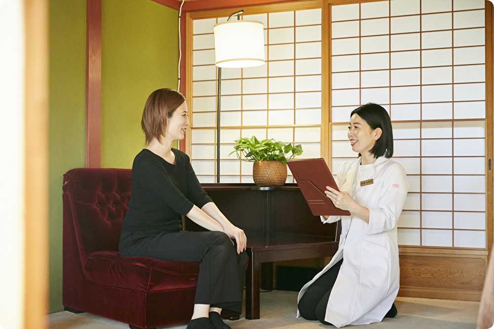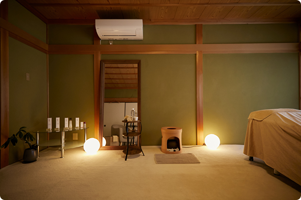 施術はすべて個室・予約制。落ち着いた静かな空間で、人目を気にせず深呼吸できる時間を。