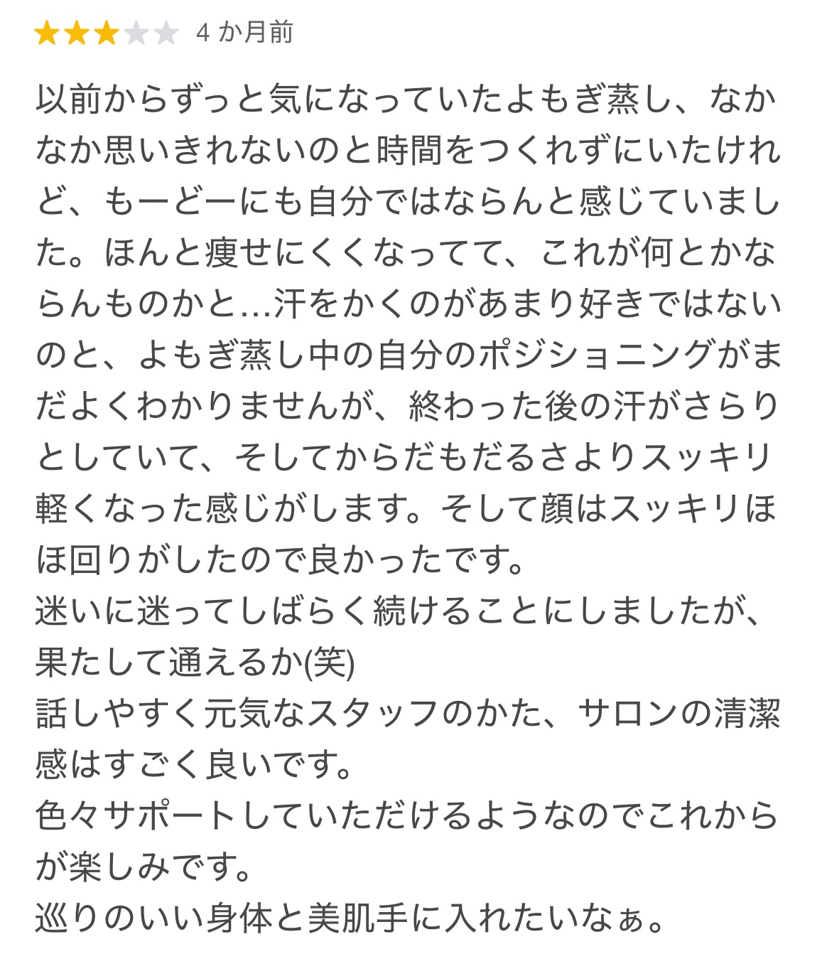 今回は、以前からよもぎ蒸しが気になっていながらも、なかなか一歩踏み出せずにいたお客様のリアルなお声をご紹介します。