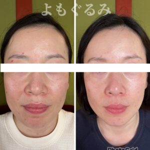 こんにちは。彦根店の松野です🌿私はよもぎ蒸しに出会って、4年が経ちました。今回の写真は、28歳の頃の肌と、現在37歳の肌を比べたものです。
