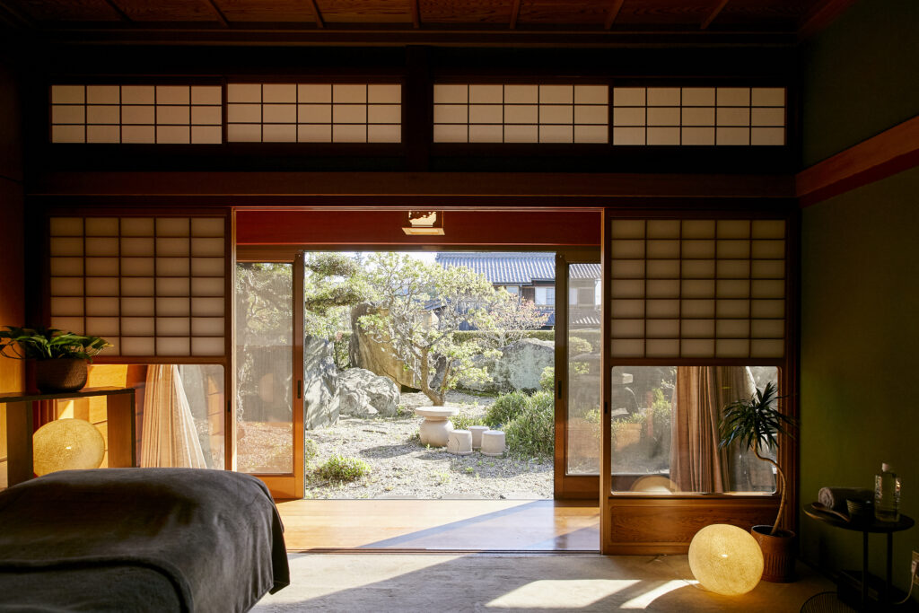 扉を開けると広がるのは、どこか懐かしさを感じる和モダンの空間。木の温もりに包まれながら過ごす時間は、ただ施術を受けるだけでなく「心を整える時間」へと変わっていきます。特に彦根本店の大きな魅力は、日本庭園を眺めながらよもぎ蒸しができること。四季折々で表情を変える庭園の景色は、春の梅の花、夏の深い緑、秋の紅葉、冬の雪景色と、訪れるたびに違った癒しを与えてくれます。